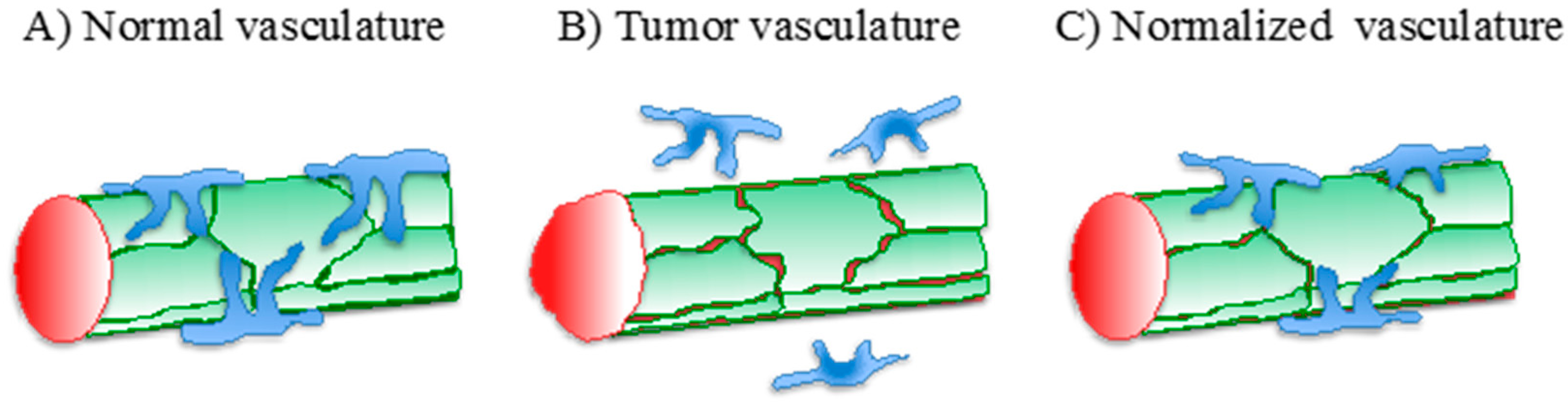 - Carmeliet, P.; Jain, R.K. Principles and mechanisms of vessel normalization for cancer and other angiogenic diseases. Nat. Rev. Drug Discov. 2011, 10, 417–427. [Google Scholar] [CrossRef] [PubMed]