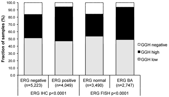 Association between GGH staining and ERG status as determined by IHC and FISH analysis.