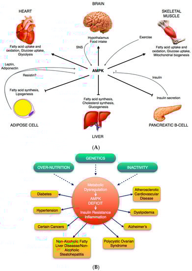 Since this kinase is involved in multiple signaling pathways, deregulation of AMPK is associated with a large number of human pathologies, so that the current focus lies in finding AMPK activators. According to this, growing attention is nowadays given to the possible preventive capacity of nutraceutical compounds to prevent illness onset through the modulation of AMPK pathway.