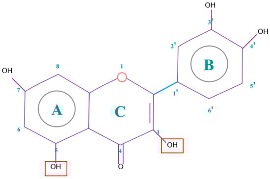 Quercetin (3,3′,4′,5,7-pentahydroxyflavone) satisfies the structural requirements that a flavonoid must own to express the maximum antioxidant potential.