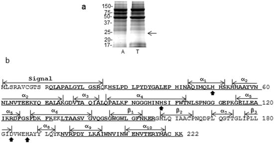 For a deep post-translational modification analysis, MNSOD was excised from SDS-PAGE (Figure 2a) and analyzed by LC-MS/MS. With a standard search using MASCOT and SEQUEST, 18 high confident peptides of MNSOD were identified, which covered 76% of the sequence (Figure 2b).
