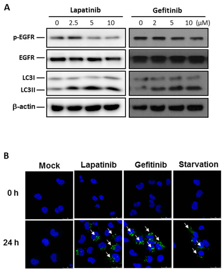 - Cui, J.; Hu, Y.F.; Feng, X.M.; Tian, T.; Guo, Y.H.; Ma, J.W.; Nan, K.J.; Zhang, H.Y. EGFR inhibitors and autophagy in cancer treatment. Tumour Biol. 2014, 35, 11701–11709. [Google Scholar] [CrossRef] [PubMed]