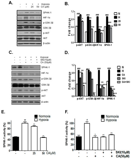 2.3. CA Inhibits Phosphorylation of AKT and GSK-3β, Which Are Involved in HIF-1α Stabilization, by SPHK-1