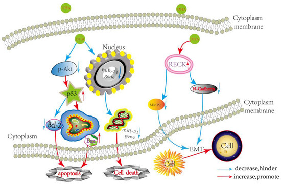 Therefore, the aim of this study was to optimize the therapeutic effect of DHA against glioma cells and to study the roles of AKT axis (AKT/p53/ Bcl-2/Bax), miR-21, and RECK in the anti-cancer activity induced by DHA. In the current study, we studied the molecular mechanisms for the anticancer activities of DHA in glioma cells and implicated miR-21 and RECK as a target for therapeutic intervention in DHA-induced cancer cell death and invasion.