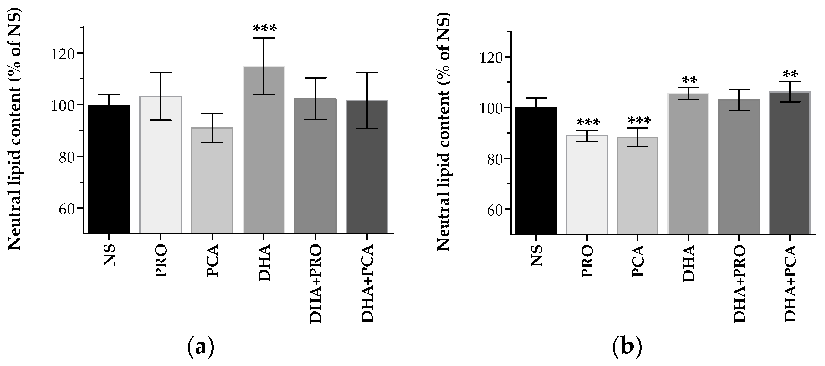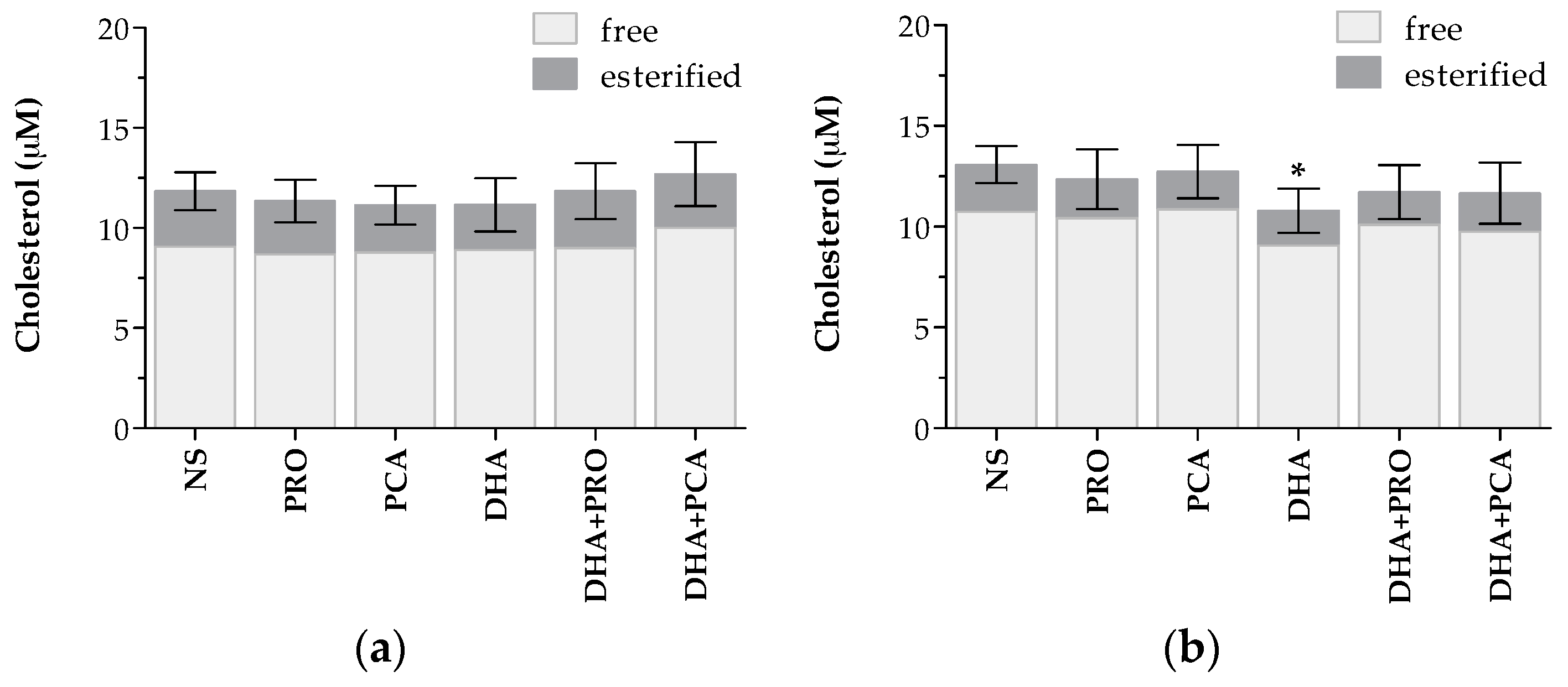 | FA | NS | 70 µM PRO | 20 µM PCA | 50 µM DHA | 50 µM DHA + 70 µM PRO | 50 µM DHA + 20 µM PCA |