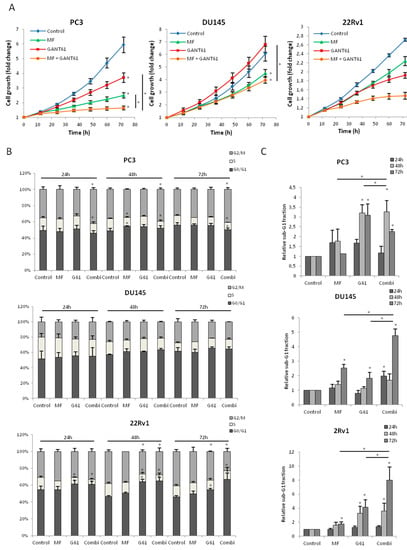 2.4. Combination of Metformin and GANT61 (GLI-ANTagonist 61) Synergistically Decreases PCa Cell Growth