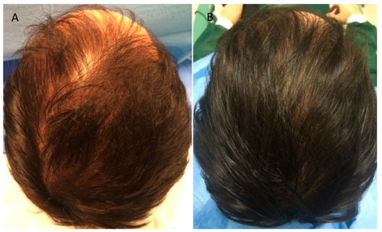 - Gentile, P.; Garcovich, S.; Bielli, A.; Scioli, M.G.; Orlandi, A.; Cervelli, V. The effect of platelet-rich plasma in hair regrowth: A randomized placebo-controlled trial. Stem Cells Transl. Med. 2015, 4, 1317–1323. [Google Scholar] [CrossRef] [PubMed]