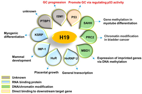 Researchers have found that physical binding between H19 and p53 served as both effector and regulator of p53 in GC [94]. Overexpression of H19 partially inactivated p53 activity and suppressed expression of Bax, which highly induced cell proliferation in GC [94].
