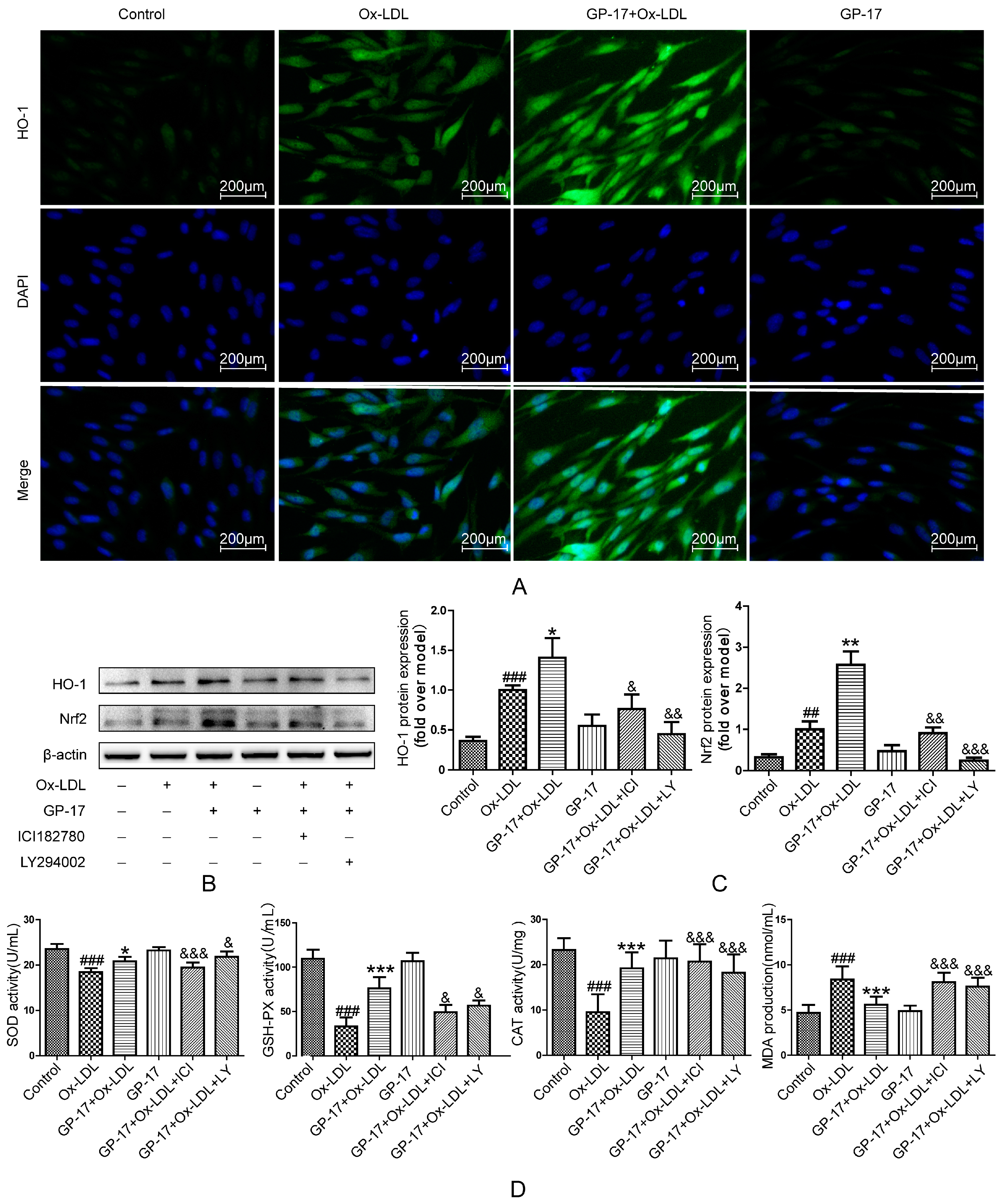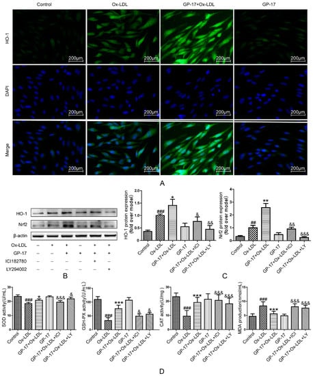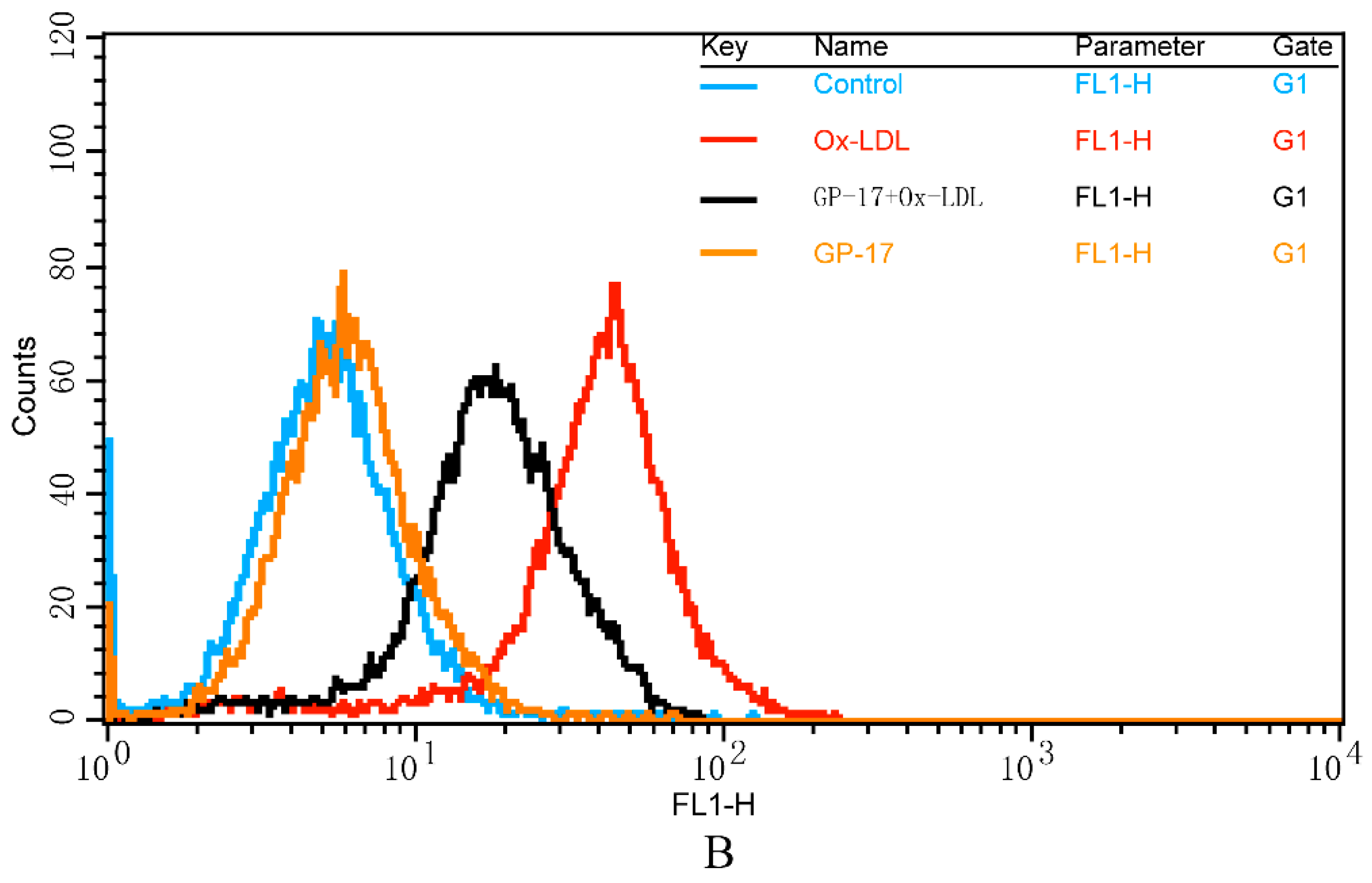 2.5. GP-17 Reduced Ox-LDL-Induced ROS Generation in HUVECs