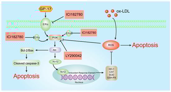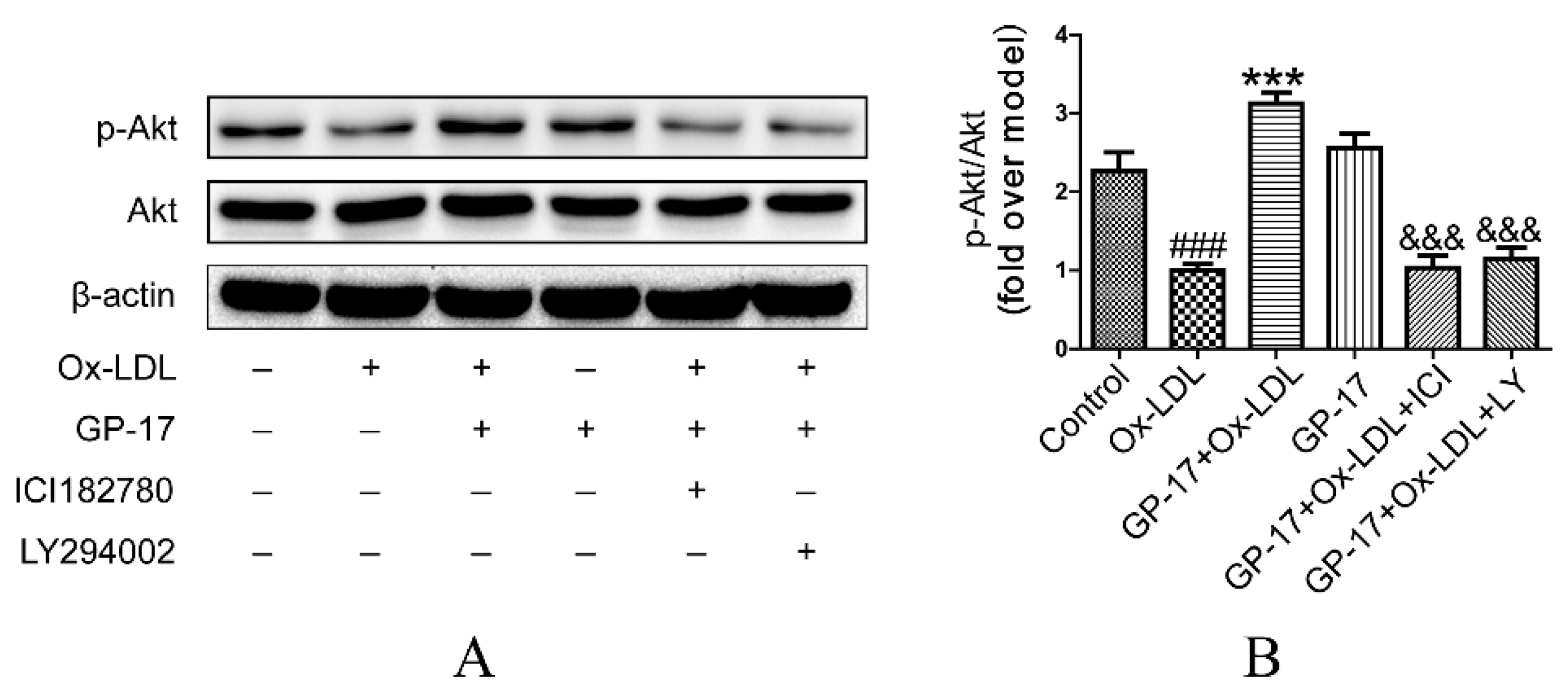 2.8. GP-17 Increases Antioxidant Defense via the ERα/PI3K/Akt Pathway in HUVECs