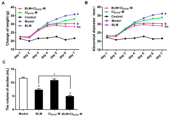 2.1. Anti-Tumor Activities of CISCFE, BLM, and Their Combination on H22 Tumor-Bearing Mice