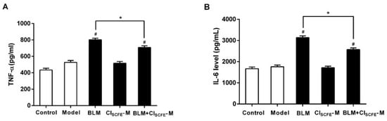 2.6. Effect of CISCFE on Cytokine Production Induced by BLM in the Lung Tissues