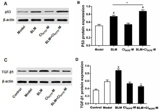 2.8. Effect of CISCFE and BLM Treatments on p53 and TGF-β1 Expressions