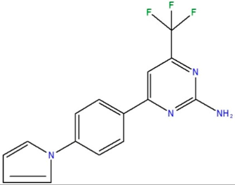 The applicability of this methodology was validated by screening a large chemical library. We used the Maybridge HitFinder Collection, containing 14,400 compounds, in the search for putative inhibitors of α-syn aggregation. Each compound was tested in triplicate and each plate contained a triplicated α-syn control devoid of compound. Discarding false positives caused by Th-T fluorescence quenching during the data collection was essential. For this purpose, we recorded the absorbance spectra from 400 to 600 nm for any putative positive compound, and discarded those absorbing either at the Th-T excitation or emission wavelengths, 450 and 480 nm respectively. The successfulness of the approach is illustrated in Figure 4C, with two compounds (D and G) that exhibit medium and high effect on final Th-T fluorescence. It can be observed the low error bars obtained for all the reactions, which results in high statistical significance when assessing the inhibitory potency of the compounds at any time point. Accordingly, fitting the experimental data to the Finke-Watzky curve resulted in the large majority of cases in correlation coefficients R > 0.985. The ability of the method to identify bona fide inhibitors requires an orthogonal validation. In our case it was confirmed by visualizing control and compound-treated reactions end points by TEM. As an example, it can be seen in Figure 4D–F how the presence of compounds D and G results in an important decrease in both number and size of α-syn fibrils. Centrifugation assays indicated higher levels of soluble α-syn at the end of the reaction in the presence of inhibitors. The screening rendered 47 novel compounds able to efficiently modulate the aggregation and inhibit fibril formation of α-syn. These compounds belong to different chemical families, supporting the versatility of the assay. The chemical structures and the activities of 10 representative molecules are illustrated in Table 1. After fitting their respective aggregation curves, the 47 compounds fall into one of two classes: those that decrease the final Th-T fluorescence without reducing k1 and k2, like compound G, and those that decrease both the fluorescence signal and the kinetic constants, like compound D. They are those last compounds that exhibit pharmacological interest, since they are expected to delay the onset of the aggregation reaction. A convenient way to discriminate between these two types of molecules in large-screening assays is to compare the halftime of aggregation (t50) [40].