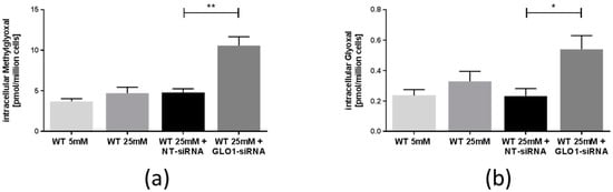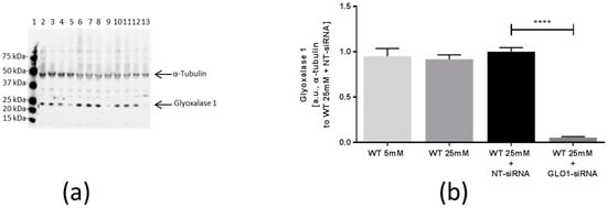 - Engelbrecht, B.; Stratmann, B.; Hess, C.; Tschoepe, D.; Gawlowski, T. Impact of GLO1 knock down on GLUT4 trafficking and glucose uptake in L6 myoblasts. PLoS ONE 2013, 8, e65195. [Google Scholar] [CrossRef] [PubMed]
