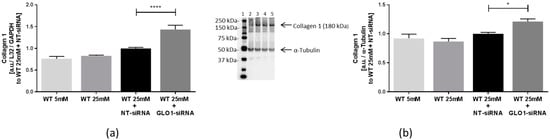 Stratmann, B.; Goldstein, B.; Thornalley, P.J.; Rabbani, N.; Tschoepe, D. Intracellular Accumulation of Methylglyoxal by Glyoxalase 1 Knock Down Alters Collagen Homoeostasis in L6 Myoblasts. Int. J. Mol. Sci. 2017, 18, 480. https://doi.org/10.3390/ijms18030480