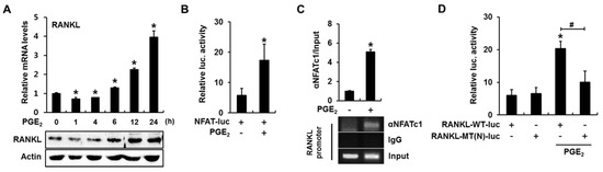 2.3. PGE2 Enhances RANKL Promoter Activity in an NFAT Binding Element-Dependent Manner