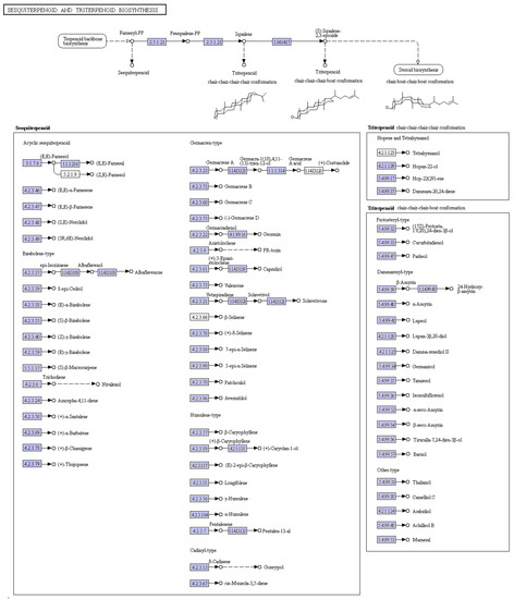Sesquiterpene and terpenoid backbone biosynthesis pathway in M. roridum.
