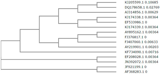 Phylogeny of NK sequences. Predicted NK protein sequences were generated using DNA to PROTEIN software (available at: http://web.expasy.org/translate/). Sequence analysis, multiple sequence alignment, and phylogenetic analysis were conducted using ClustalW2 (available at: http://www.ebi.ac.uk/Tools/msa/clustalw2/) software. A total of 16 NK gene sequences were deposited in the NCBI Genbank. Fifteen mature protein sequences were subjected to a phylogenetic analysis. HM068963.1 is only represented by a partial sequence and as a result, was not included in the phylogenetic analysis.