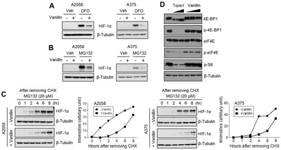 2.3. Vanillin Attenuates HIF-1α Protein Synthesis