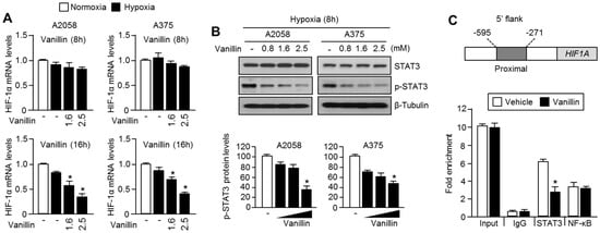 Park, E.-J.; Lee, Y.-M.; Oh, T.-I.; Kim, B.M.; Lim, B.-O.; Lim, J.-H. Vanillin Suppresses Cell Motility by Inhibiting STAT3-Mediated HIF-1α mRNA Expression in Malignant Melanoma Cells. Int. J. Mol. Sci. 2017, 18, 532. https://doi.org/10.3390/ijms18030532