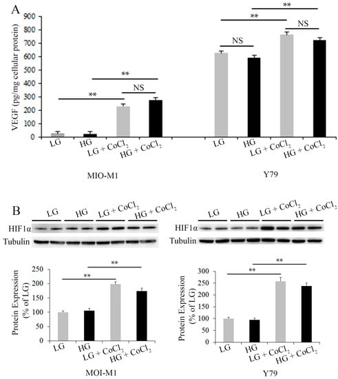 2.2. Effects of Cell Stress on Vascular Endothelial Growth Factor (VEGF)-A Production and Hypoxia-Inducible Factor 1α (HIF1α) Expression in Müller Cells and Photoreceptors