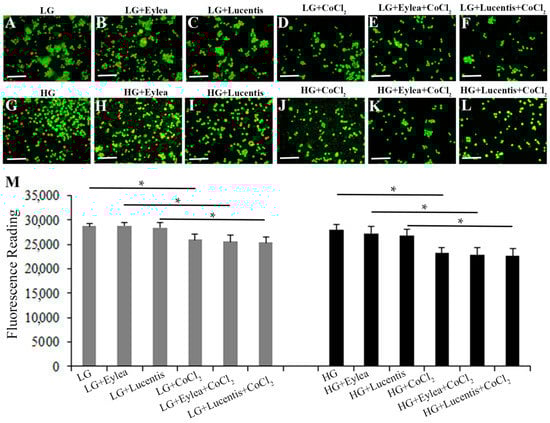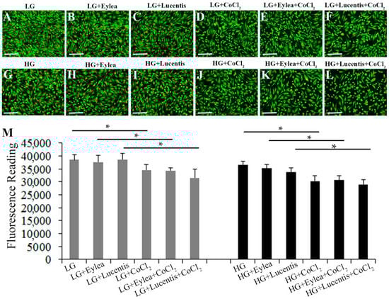 | Group | Glucose (LG/HG) | CoCl2 (200 µM) | Aflibercept (0.5 mg/mL) | Ranibizumab (0.125 mg/mL) |