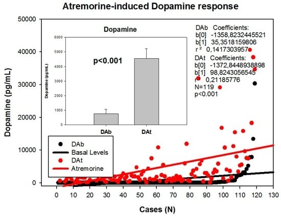 - Carrera, I.; Fernández-Novoa, L.; Sampedro, C.; Cacabelos, R. Neuroprotective effect of atremorine in an experimental model of Parkinson’s disease. Curr. Pharm. Des. 2017. [Google Scholar] [CrossRef] [PubMed]