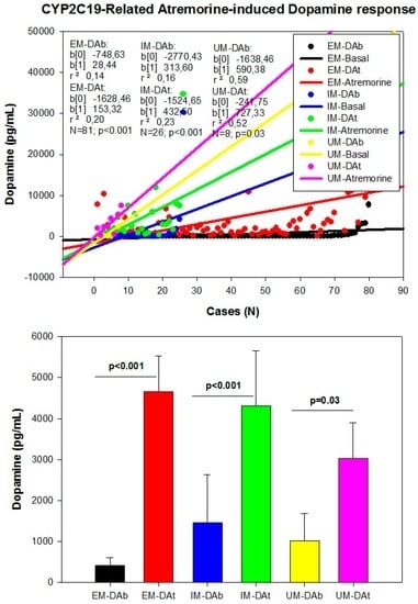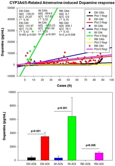 - Cacabelos, R.; Fernández-Novoa, L.; Alejo, R.; Corzo, L.; Alcaraz, M.; Nebril, L.; Cacabelos, P.; Fraile, C.; Carrera, I.; Carril, J.C. E-PodoFavalin-15999 (Atremorine®)-induced dopamine response in Parkinson’s Disease: Pharmacogenetics-related effects. J. Genom. Med. Pharmacogenom. 2016, 1, 1–26. [Google Scholar]