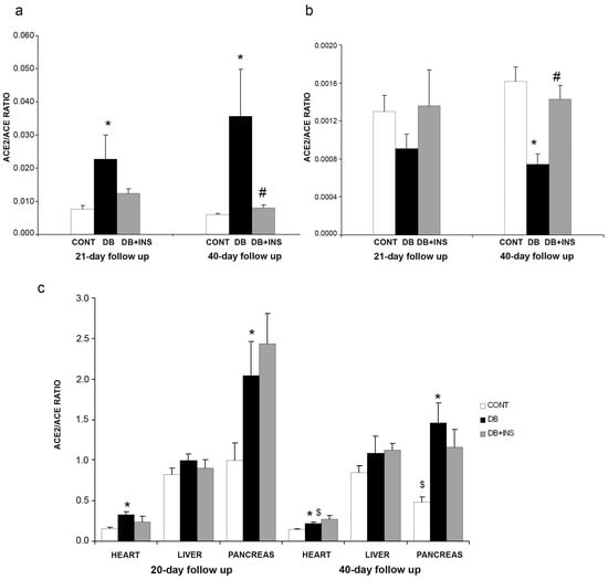 2.4. ACE2/ACE Activity Ratio in Serum, Lung, Heart, Liver, and Pancreas from Diabetic, Insulin-Treated, and Control Mice