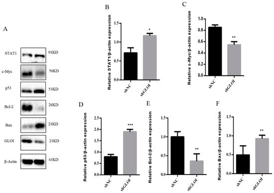 2.4. Inhibition of GLOIexpression in the Human CRC Cell Lines Upregulated STAT1, p53, and Bax Protein Expression While Downregulating c-Myc and Bcl-2expression