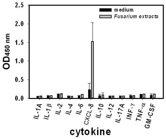 2.1. Fusarium proliferatum-Induced Cytokines Release by BEAS-2B Cells