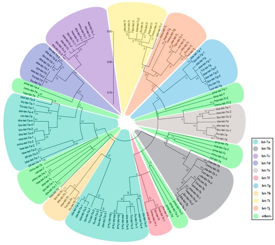 4.1. Evolutionary Analysis of Let-7 miRNA