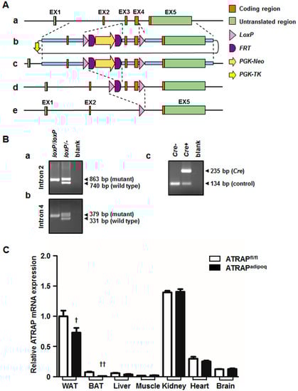 - Kang, S.; Kong, X.; Rosen, E.D. Adipocyte-specific transgenic and knockout models. Methods Enzymol. 2014, 537, 1–16. [Google Scholar] [PubMed]