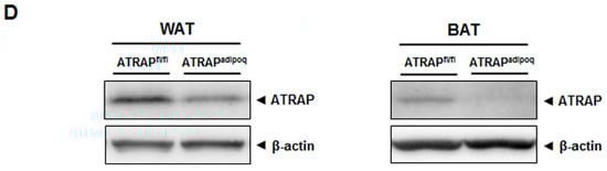 2.4. White Adipose Tissue ATRAP mRNA Expression in ATRAPadipoq Mice Is Comparable to ATRAPfl/fl Mice on a High-Fat Diet