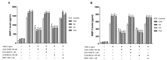 2.6. A2A and A3AR Agonists Reduced MMPs Activation in Monocytes from the Examined Subjects