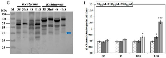 For immunodetection, 4 μg of the soluble fraction or the insoluble fraction proteins from B. calycina and R. chinensis at stages 3 and 4 were resolved by 10% SDS-PAGE and electroblotted onto a nitrocellulose membrane (GE Healthcare, Munich, Germany) following standard conditions [49]. The membranes were then incubated with the polyclonal anti-Horseradish POD antibody (Agisera Antibody, Vännäs, Sweden) and detected using a StarSignal Chemiluminescent Assay Kit (GenStar, Beijing, China) and visualized by ChemiDoc™ MP imaging system (BIO-RAD, Hercules, CA, USA).