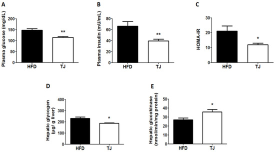 2.3. TJ Reduced Insulin Resistance and Plasma Glucose in DIO Mice