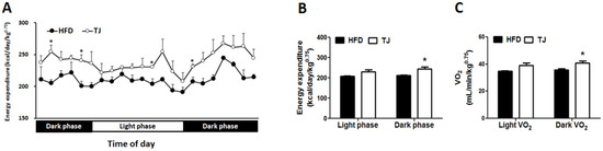 2.5. TJ Enhances Energy Expenditure in DIO Mice