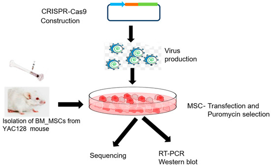 Constructed plasmids are traditionally delivered into the cells via synthetic (e.g., lipofection, polymers, or nanoparticle cargos) or non-synthetic (e.g., virus) methods [42]. In our study, we have used lentivirus. The flow of the experiment involved in this study is diagrammed in Figure 7.