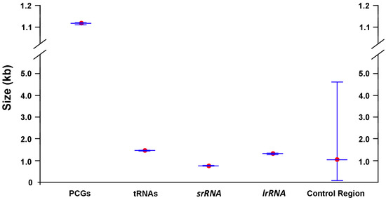 - Wolstenholme, D.R. Animal mitochondrial DNA: Structure and evolution. Int. Rev. Cytol. 1992, 141, 173–216. [Google Scholar] [PubMed]