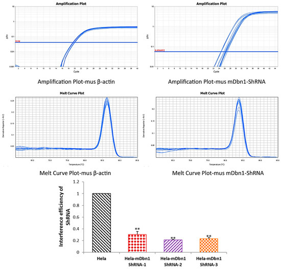 Interference efficiency of ShRNA-Dbn1 in Hela cell was detected by Q-PCR (* p < 0.05, ** p < 0.01 vs. Hela).