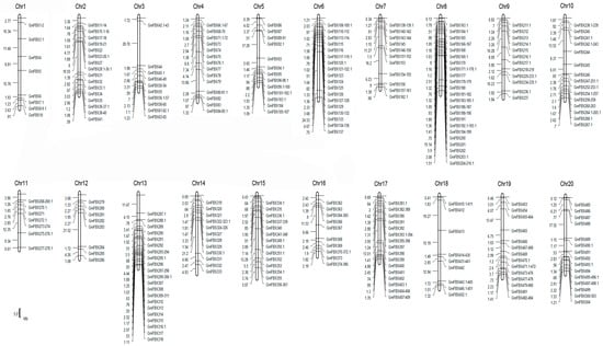 - Liu, R.H.; Meng, J.L. MapDraw: A microsoft excel macro for drawing genetic linkage maps based on given genetic linkage data. Hereditas 2003, 25, 317–321. [Google Scholar] [PubMed]