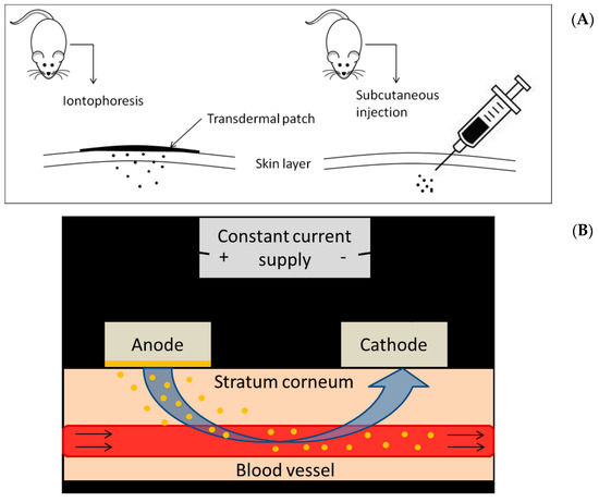 - Wang, Y.; Thakur, R.; Fan, Q.; Michniak, B. Transdermal iontophoresis: Combination strategies to improve transdermal iontophoretic drug delivery. Eur. J. Pharm. Biopharm. 2005, 60, 179–191. [Google Scholar] [CrossRef] [PubMed]