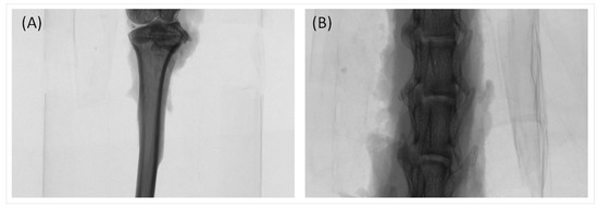 The proximal tibia and the fourth lumbar spine of rats (Figure 7) were scanned with a high-resolution micro-CT (Skyscan 1076, Bruker, Belgium). The operating condition was set at a source voltage of 50 kV and a current of 200 mA. Data were acquired at every 0.5° rotation step through 180°. The micro-CT scanning width was set as 34 mm as the height was 17 mm. After scanning, images were re-constructed using CT-analyser (CTAn) computer software (Skyscan, Bruker, Belgium) to assess the trabecular microstructure starting from the region of interest in the binary images. With defined and established threshold in the gray-scale, CTAn software analyzed bone morphometric data such as the ratio between bone volume (BV) and total tissue volume (TV) (BV/TV; %). Trabecular thickness (TbTh; μm), trabecular number (TbN; mm−1), trabecular separation (TbSp; μm) and BMD were also determined. The coefficients of variation used for morphometric parameters of BV/TV, TbN, TbTh and TbSp were 2.0%, 1.1%, 0.66%, and 1.30%, respectively, based on the methods in our previous studies [31,46].
