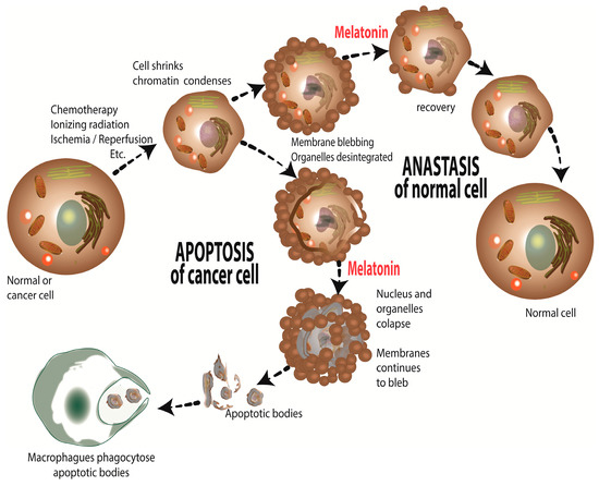 That melatonin modulated the induction of apoptosis in hyperthermia-treated human leukemia cells (0937) was verified by Quintana and coworkers [272]. Hyperthermia has emerged as a common approach to aid in the killing of cancer cells; it is usually combined with radio- or chemotherapy [273,274]. In the current study, melatonin, which by itself is an anti-cancer agent, when combined with hyperthermia (43 °C) enhanced the apoptotic responses of human acute myeloid leukemia cells. Hyperthermia triggered apoptosis via mechanisms involving caspase 8, hydrolysis of Bid, release of cytochrome C from mitochondria followed by the activation of caspase 9 and caspase 3 [272]. When melatonin was added to the incubation medium, it greatly amplified hyperthermia-mediated cancer cell death by exaggerating the intrinsic apoptotic pathway. While melatonin is well recognized for its low toxicity under euthermia body temperatures, its effects during whole body induced hyperthermia, which is used to treat multiple metastatic sites, has yet to be tested.