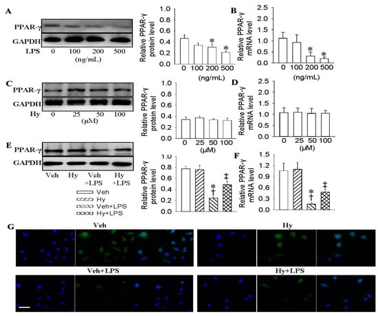 2.3. Activation of PPAR-γ Mediated the Protective Role of Hy against LPS-Evoked Inflammation in HMEC-1 Cells