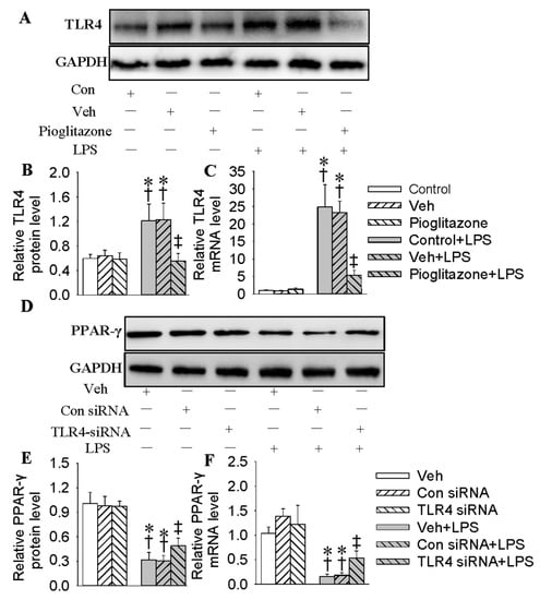 2.4. Interaction of PPAR-γ with TLR4 in HMEC-1 Cells in Response to LPS