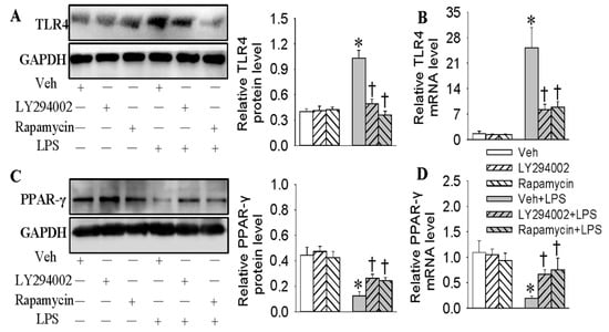 2.6. Negative Correlation of TLR4 and PPAR-γ in LPS-Stimulated HMEC-1 Cells Was Dependent on the PI3K/Akt/mTOR Signaling Pathway