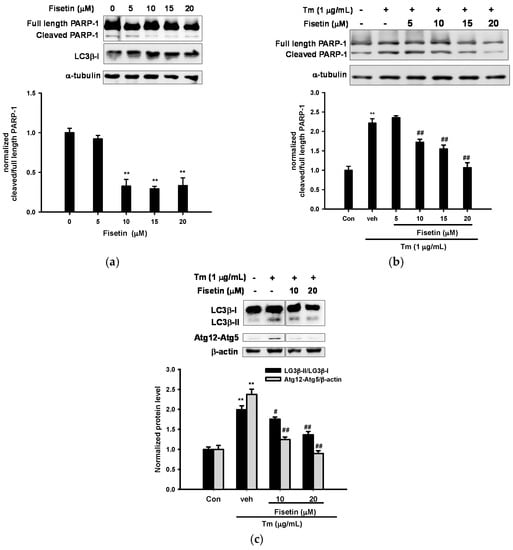 2.2. Fisetin Inhibits Tm-Mediated Apoptotic and Autophagic Marker Protein Expression